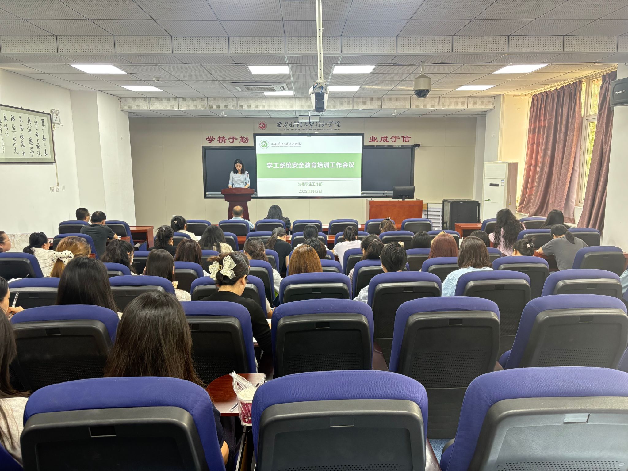 为全面强化学生安全管理工作,切实保障学生身心健康与校园和谐稳定,9月3日下午,学生处在1103报告厅召开“学工系统安全教育培训工作会”。学生处处长何雷出席会议并发表讲话,各二级学院(部)党总支书记、全体辅导员及学生处全体干事参加本次培训会。
